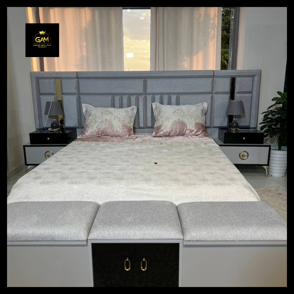 ✔️ سرير كبير مكسو بقماش فاخر من نوع أونتي تاش المقاوم للبقع