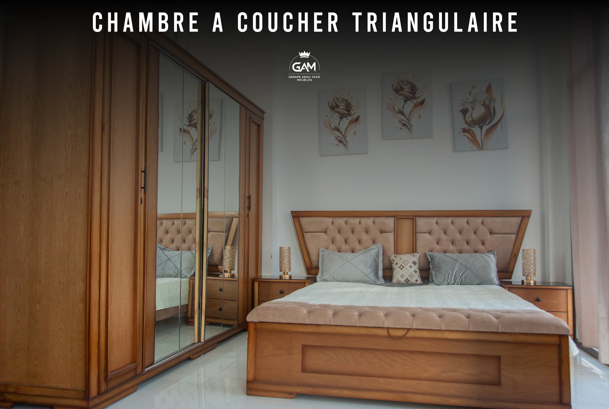 🔺 ظهر السرير على شكل مثلث يمنح الغرفة لمسة فنية فريدة تبرز فخامة التصميم.
