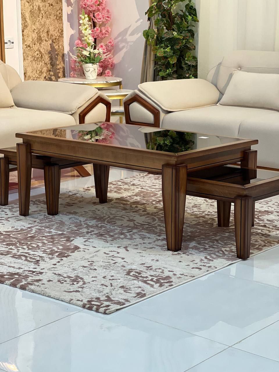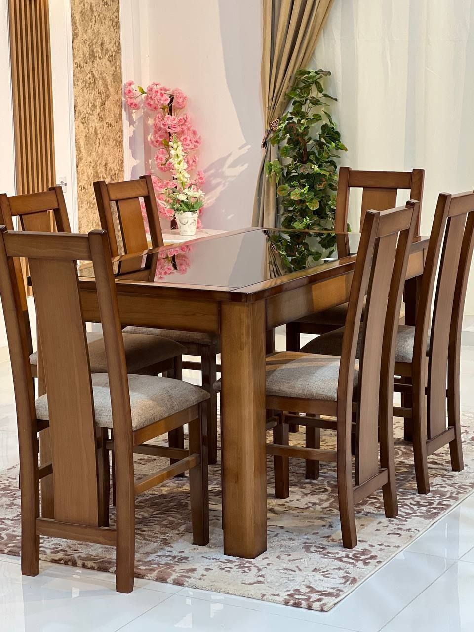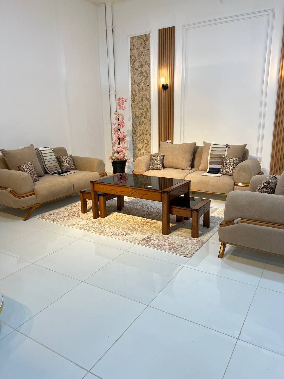 باك الفا المتكون من صالون 6 اماكن مع طاولة اكل ب 6 كراسي و طابل باز + 2 بياس