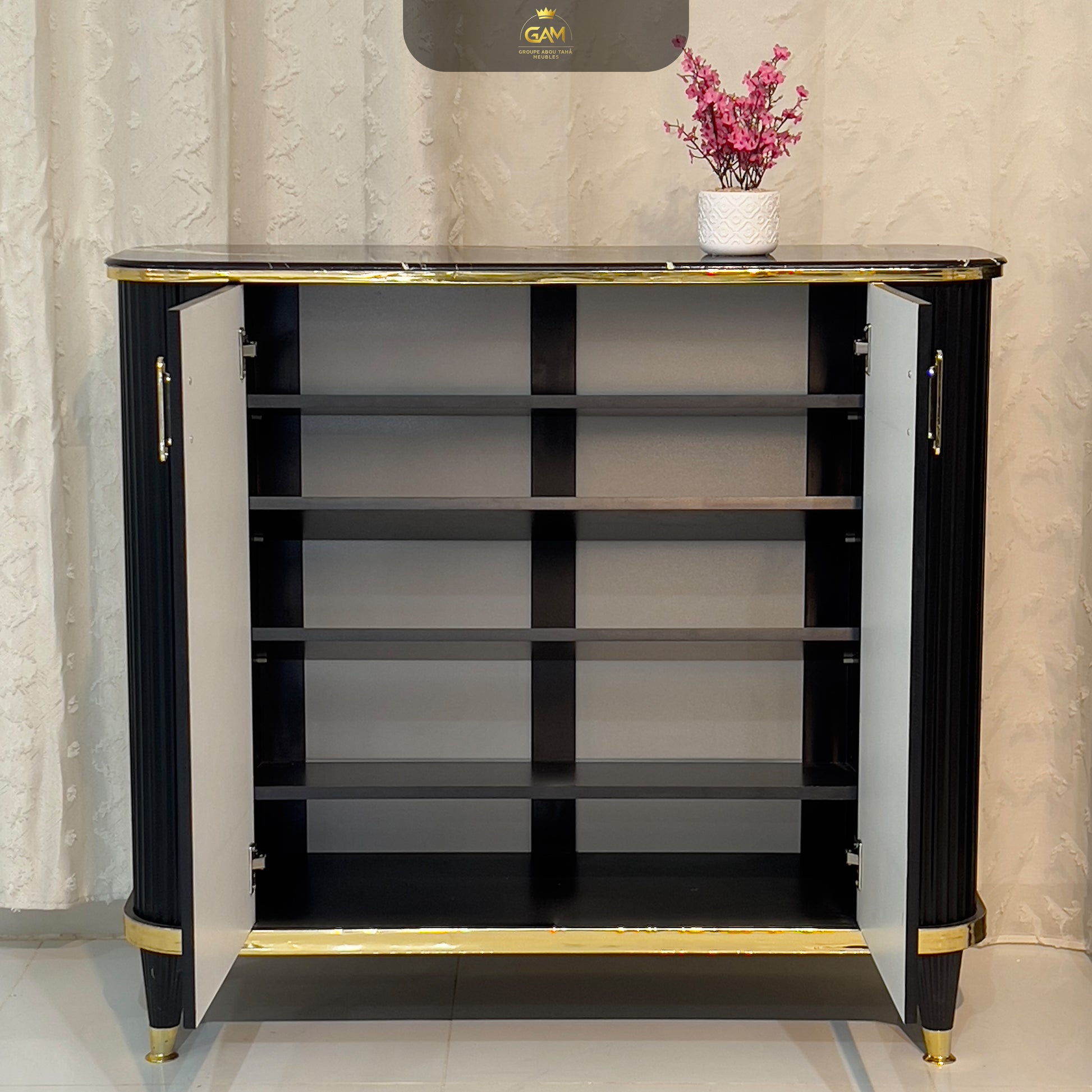 خزانة أحذية أنيقة تجمع بين العملية والجمال في تصميم واحد. مصنوعة من خشب MDF عالي الجودة يتميز بالمتانة وسهولة التنظيف. تمنحك ترتيبًا مثاليًا لأحذيتك وتضيف لمسة فاخرة لمدخل المنزل أو غرفة النوم.