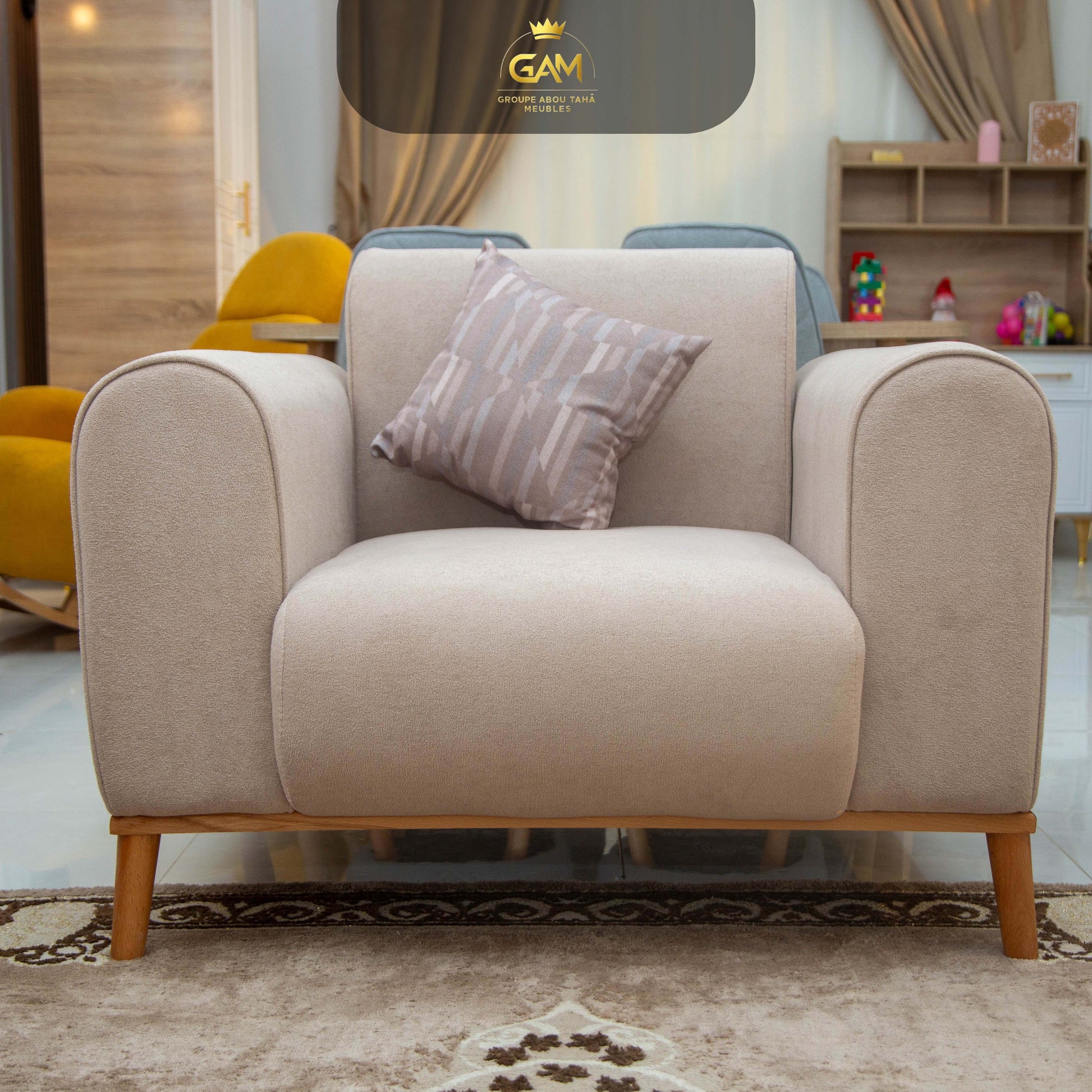 🔹 الديزاين: خطوطو عصرية، ذراعين عراض بشكل مستدير، يجي مع كوشونات بزخرفة راقية تزيد من جمال الصالون وتوفّر راحة أكثر.