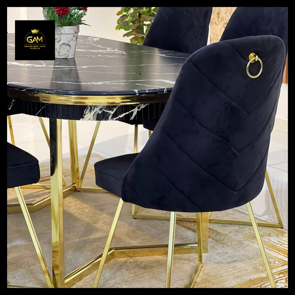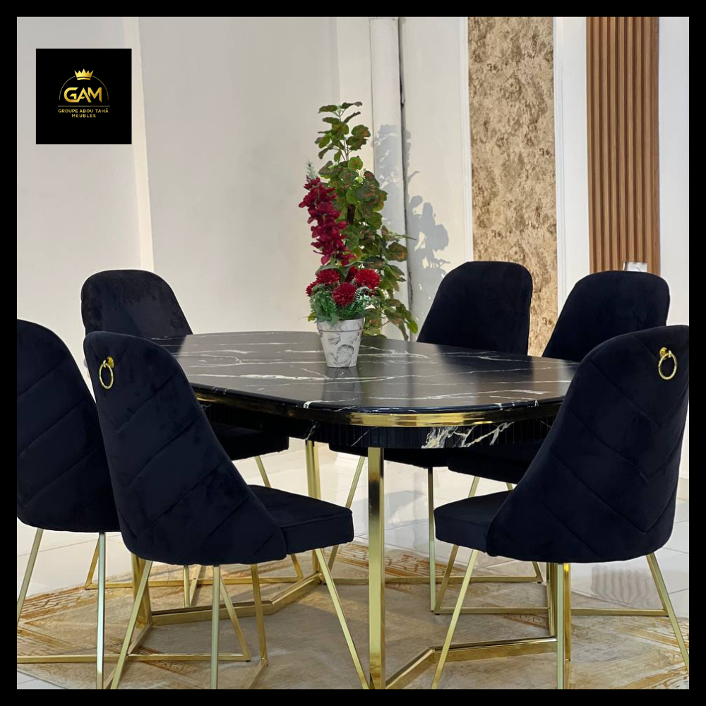 طاولة طعام راقية تتسع لستة أشخاص، بتصميم عصري يضفي لمسة جمالية على غرفة الطعام. مثالية للعائلات ولمحبي الأناقة والبساطة في نفس الوقت.
