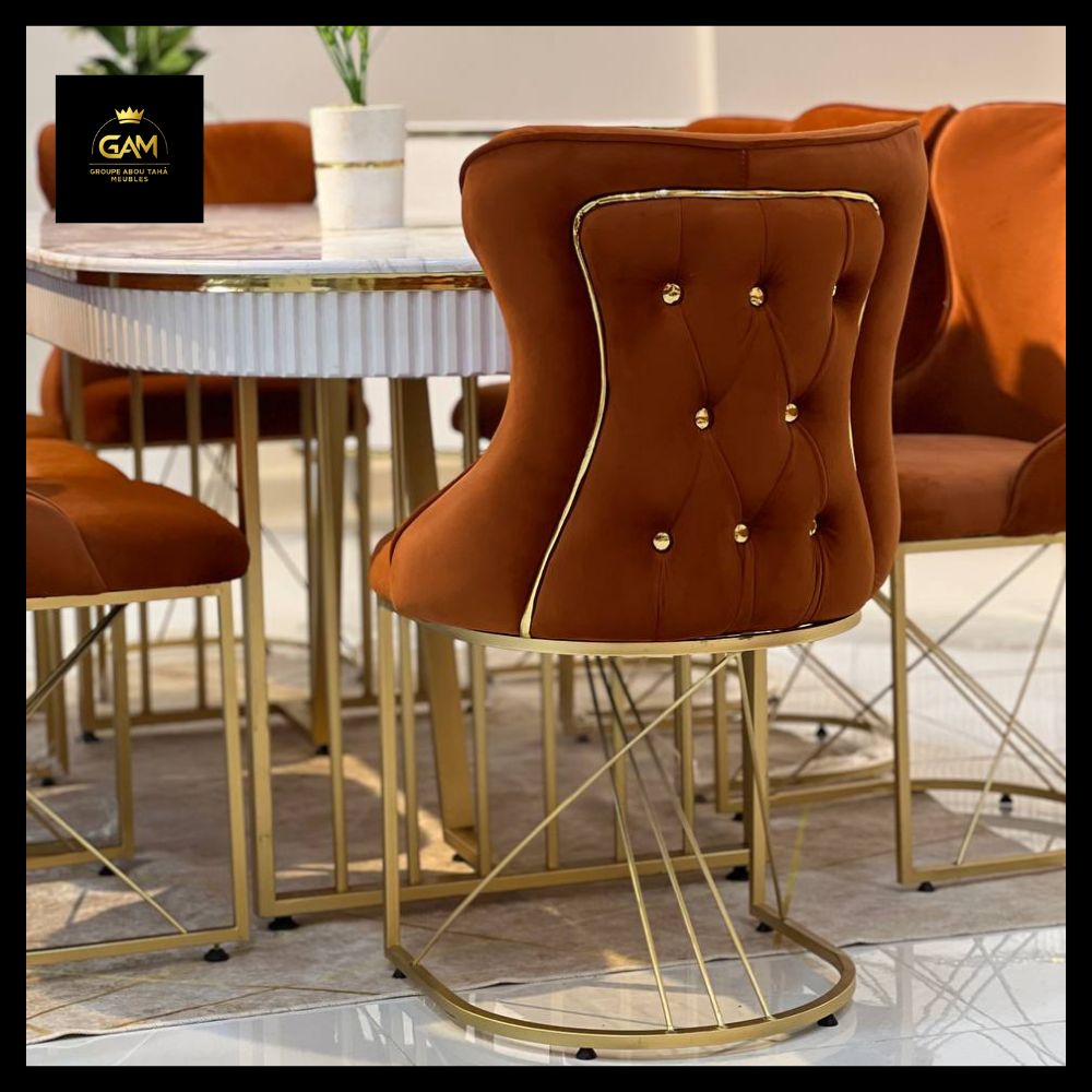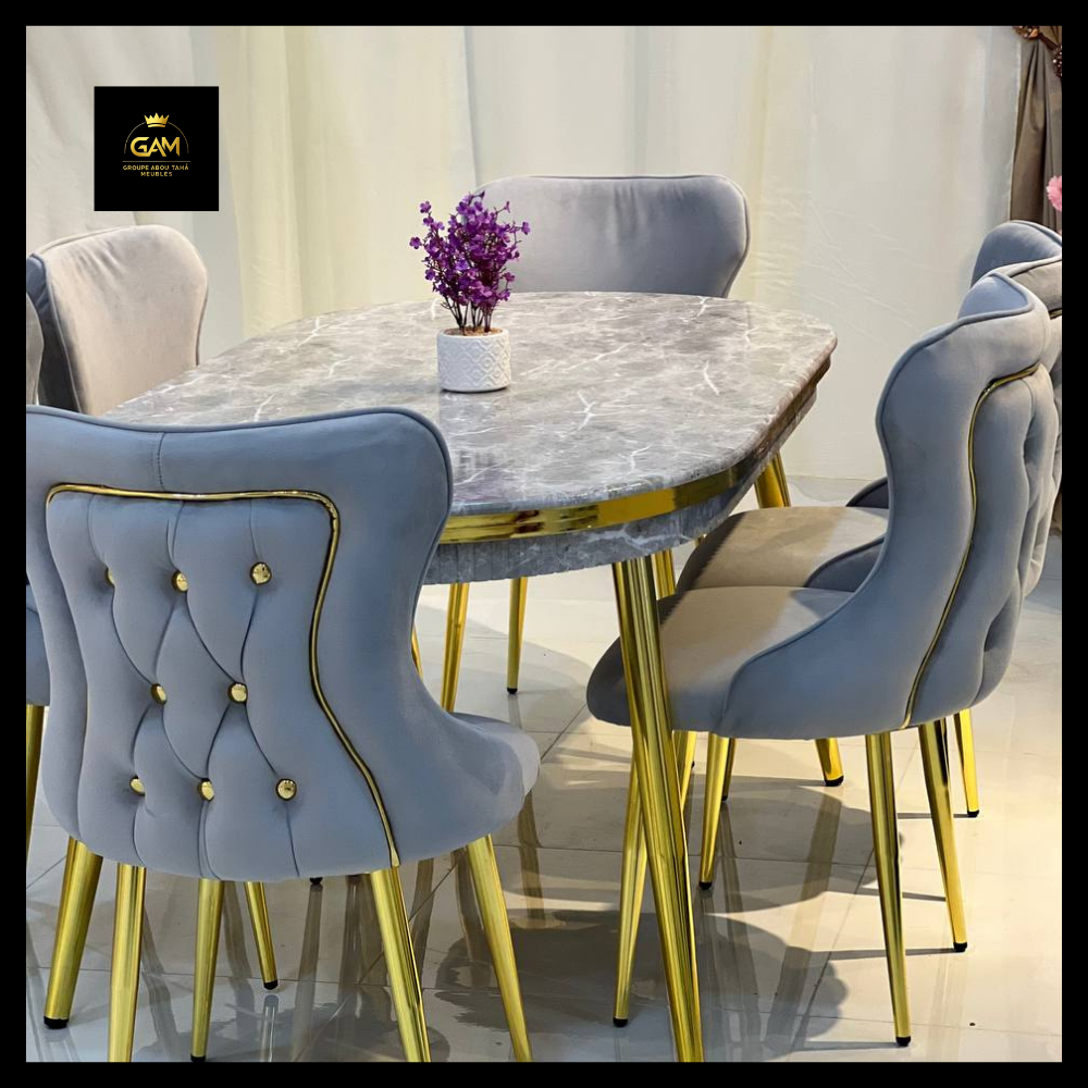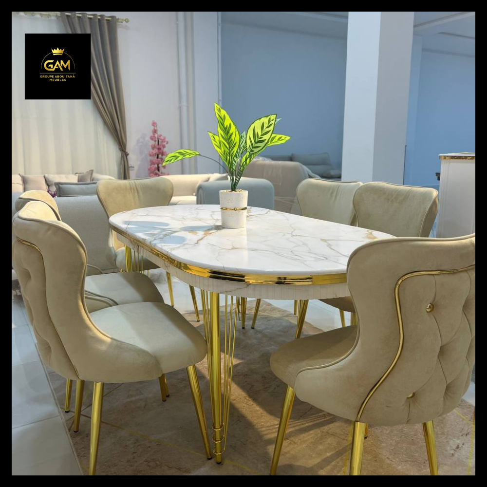 طاولة طعام راقية تتسع لستة أشخاص، بتصميم عصري يضفي لمسة جمالية على غرفة الطعام. مثالية للعائلات ولمحبي الأناقة والبساطة في نفس الوقت.