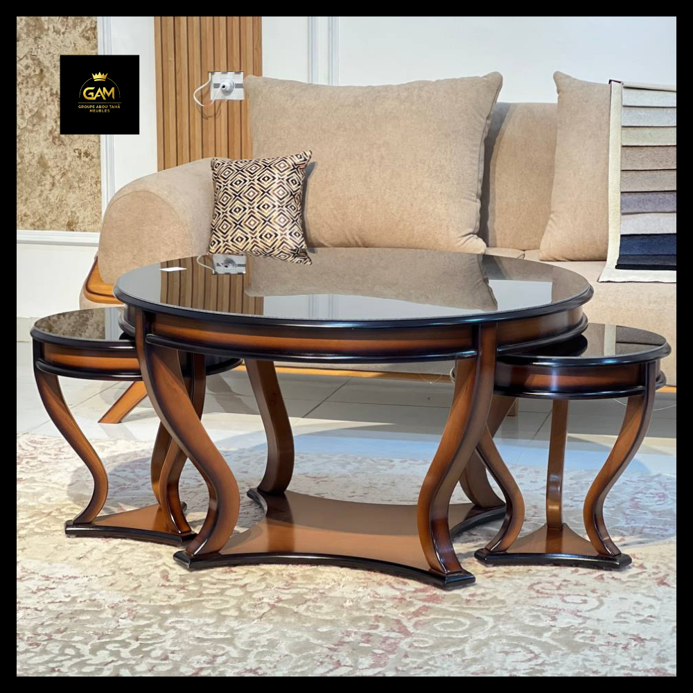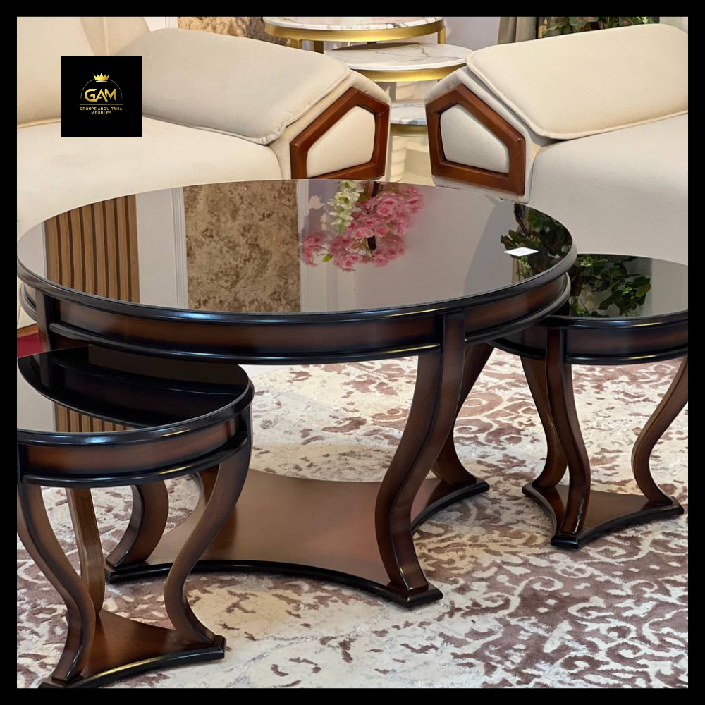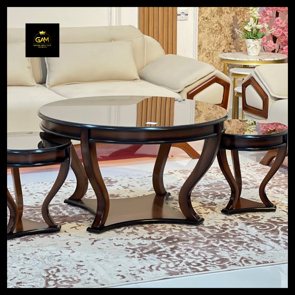 🪞 TABLE BASSE 3 PIÈCES ROND HÊTRE – فخامة تلتقي بالعملية