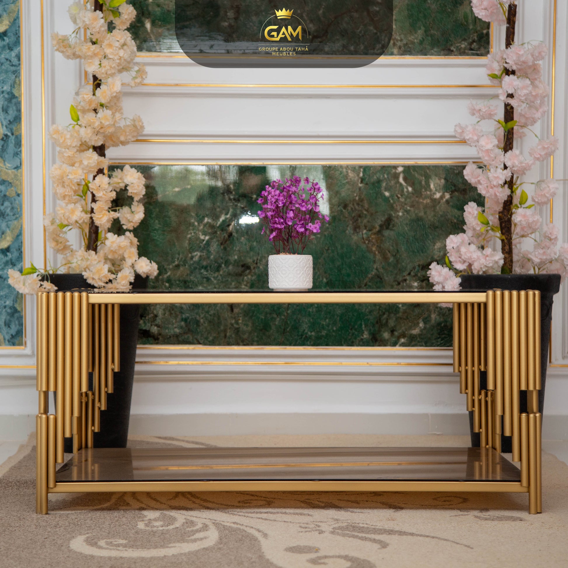 ✨ أضف لمسة من الفخامة إلى منزلك مع هذا الطابل باز المربّع المكون من طابقين. يجمع بين الأناقة والوظيفة بفضل تصميمه العصري المصنوع من المعدن المتين والزجاج المقوّى الشفاف. مثالي لوضع الكتب، الديكورات أو المشروبات في الصالون أو غرفة الجلوس.