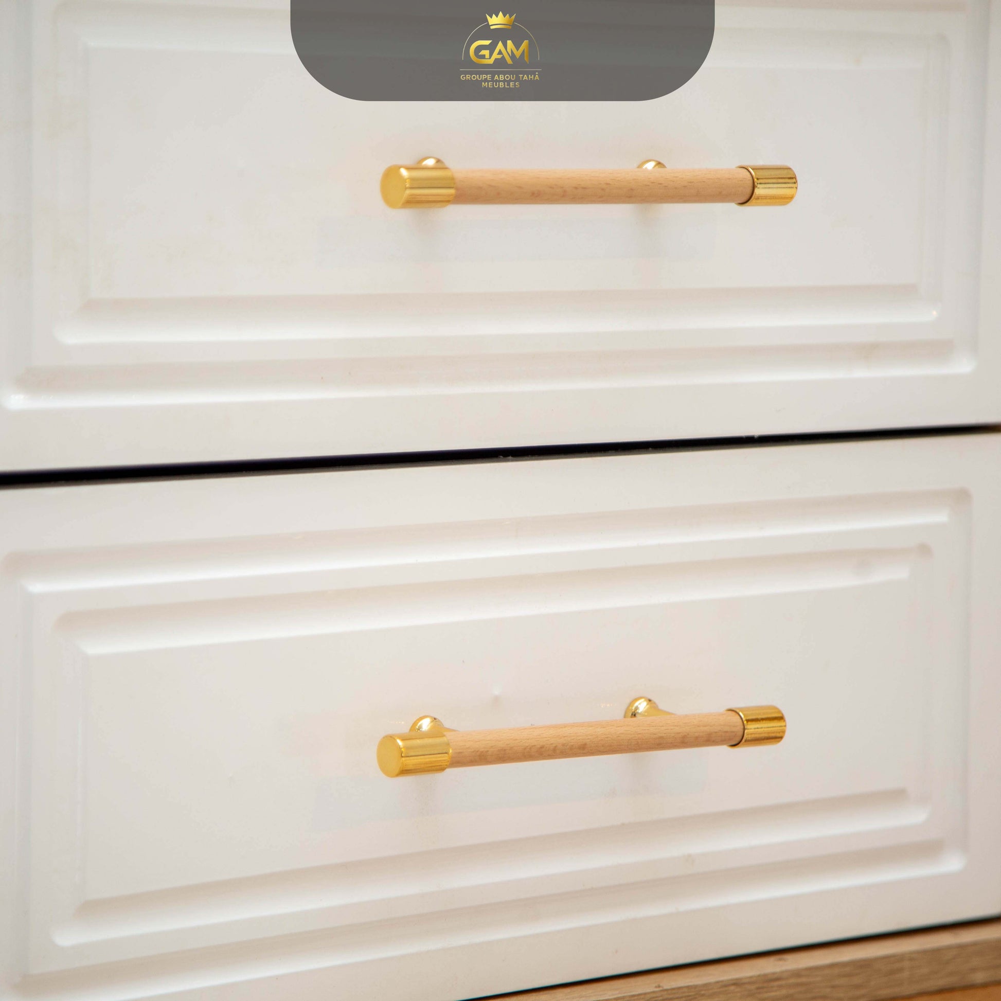 التصميم: درجين بمقابض ذهبية أنيقة ولمسات عصرية فاخرة.